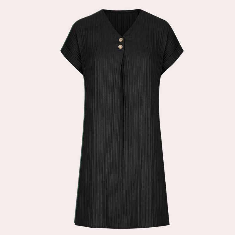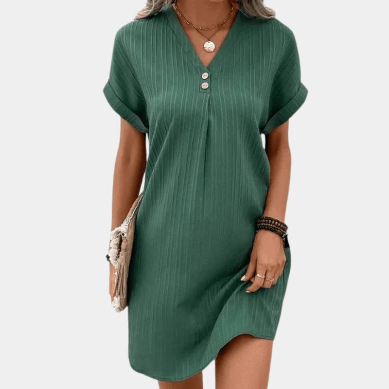 Med sin tidløse V-hals og minimalistiske design, er denne kjolen lett å style og passer til enhver anledning.