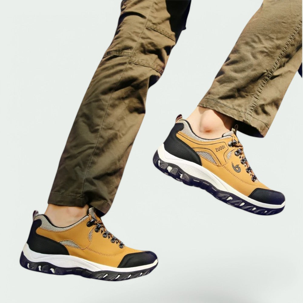 Disse fotturer skoene er laget av slitesterkt materiale som gir langvarig bruk. Den pustende konstruksjonen holder føttene dine friske og tørre, samtidig som den moderne stilen gir et sofistikert preg til antrekket ditt. Perfekte for en avslappende spasertur, en uformell arbeidsdag eller en aktiv helg.