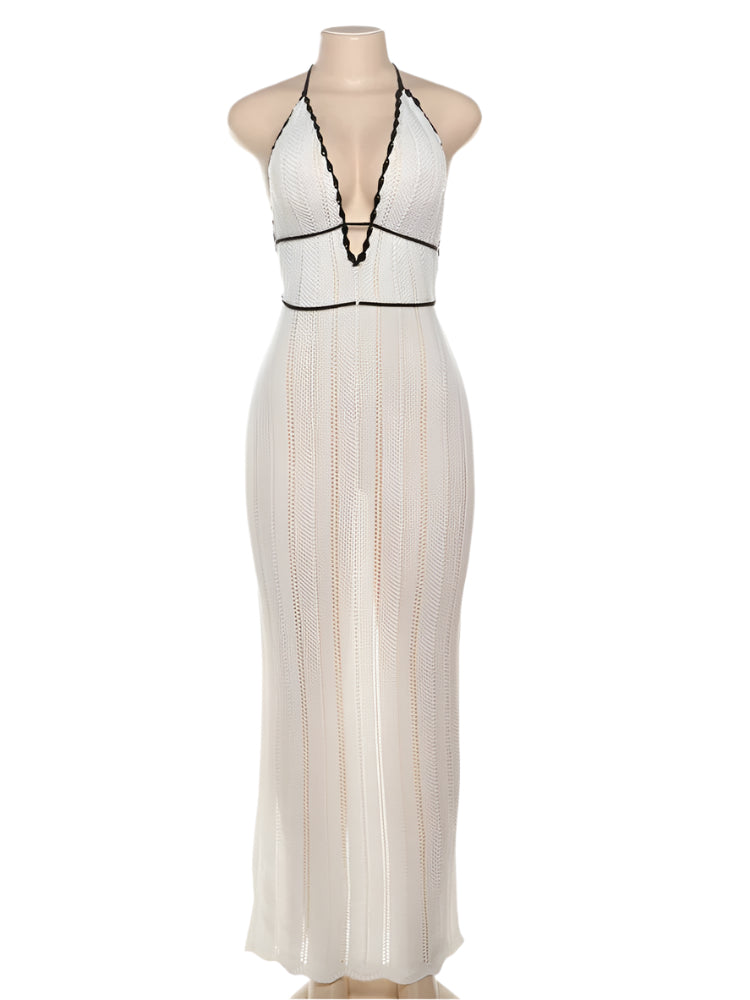 Denne ermeløse halterneck-kjolen har et fargeblokkdesign, snøring i ryggen og en åpen ryggsilhuett for et iøynefallende sommerlook. Det lette stoffet beveger seg lett med deg, mens den smale passformen fremhever figuren din uten å føles innskrenkende.