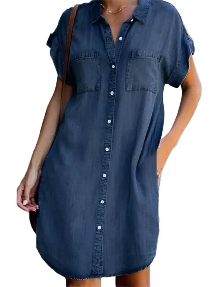 Denne denimskjorte-kjolen har en løs passform, enkel knappelukking og praktiske sidelommer for en avslappet hverdagslook. Den er laget av myk, slitesterk denim og kombinerer retrostil med uformell komfort, noe som gjør den perfekt for avslappede dager eller byvandringer.