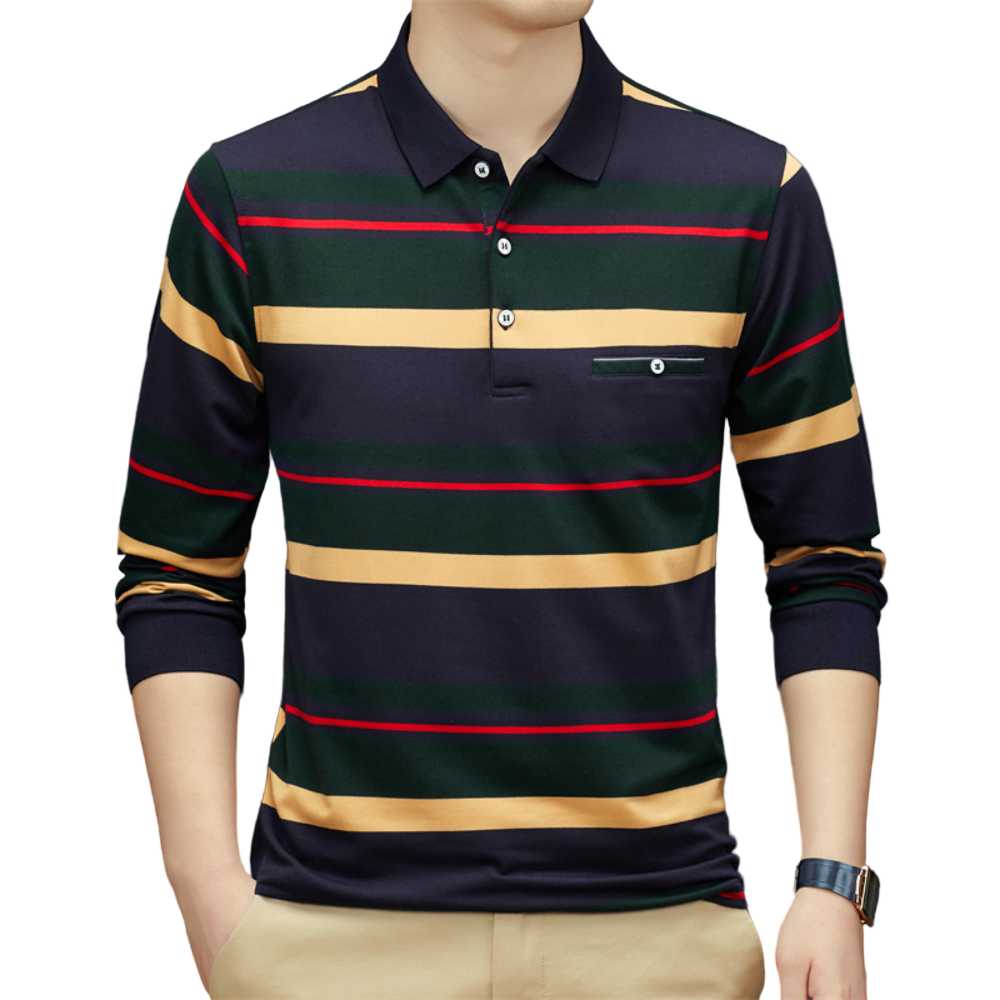 Oppdag den perfekte kombinasjonen av stil og komfort med vår herre langermet t-skjorte med striper. Denne skjorten er ideell for både hverdagsbruk og avslappede stunder hjemme.