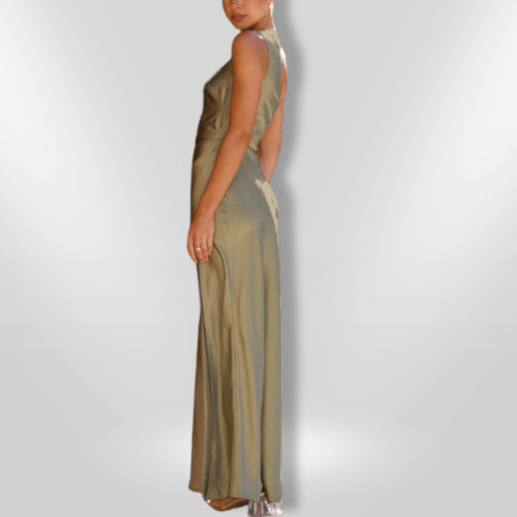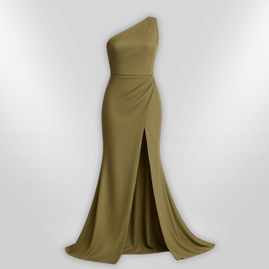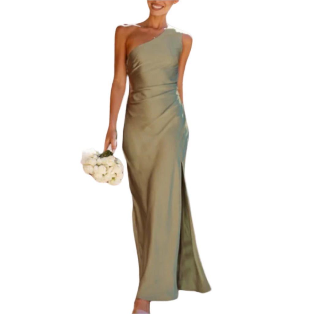 Designet med en asymmetrisk en-skulder stil, denne kjolen er ideell for bryllup, galafester eller kvelder ute. Den høye splitt gir både bevegelsesfrihet og en dristig, moderne silhuett.