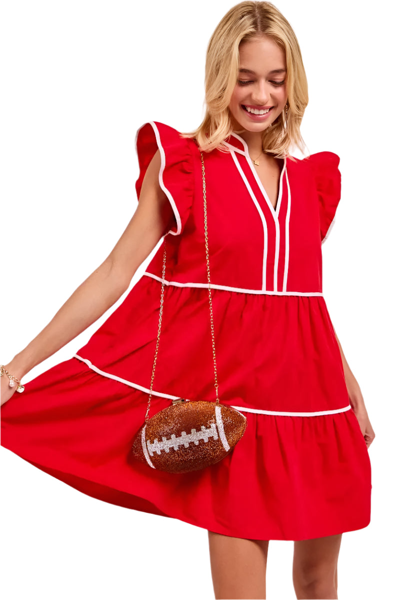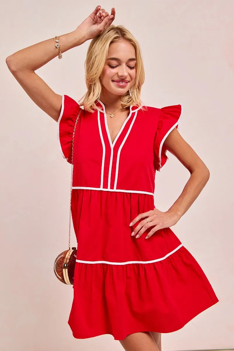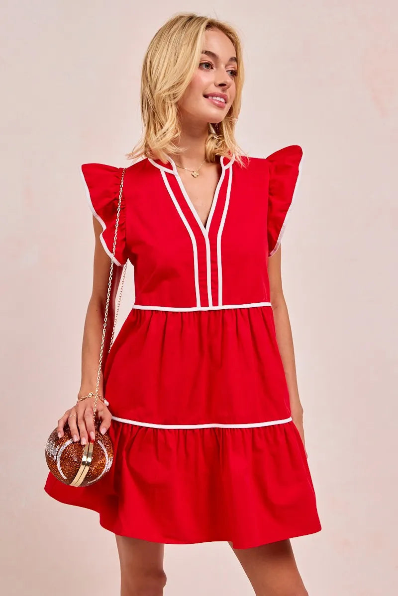 Oppdag den lekne og stilige kjolen med ruffle og kontrastbinding som gir et friskt pust til garderoben din. Denne kjolen er perfekt for å uttrykke lagånd og tilføre en sporty sjarm til antrekket ditt.
