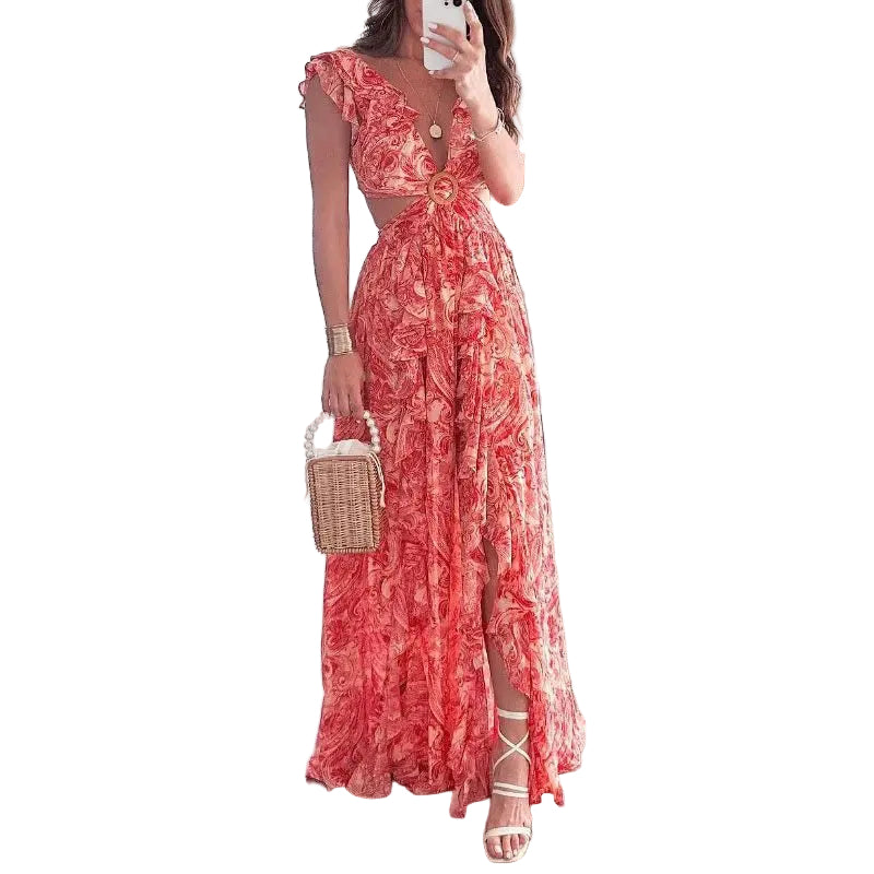 Opplev en følelse av stil og selvtillit med vår V-hals blomsterkjole. Denne kjolen er designet for å få deg til å føle deg fantastisk, uansett anledning.