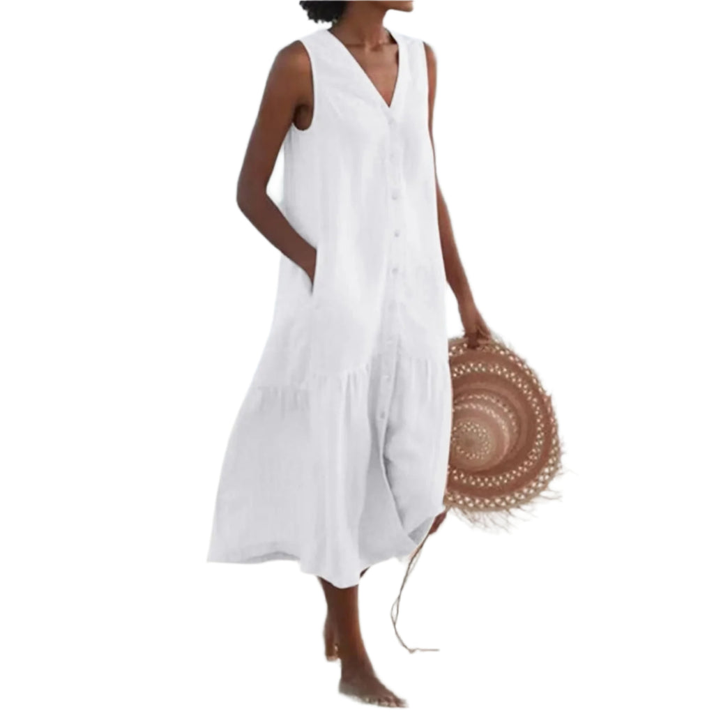 Opplev en ny dimensjon av stil med vår kjole med V-utringning. Denne kjolen er perfekt for både hverdagslige anledninger og spesielle øyeblikk, og gir deg en følelse av selvtillit og eleganse.