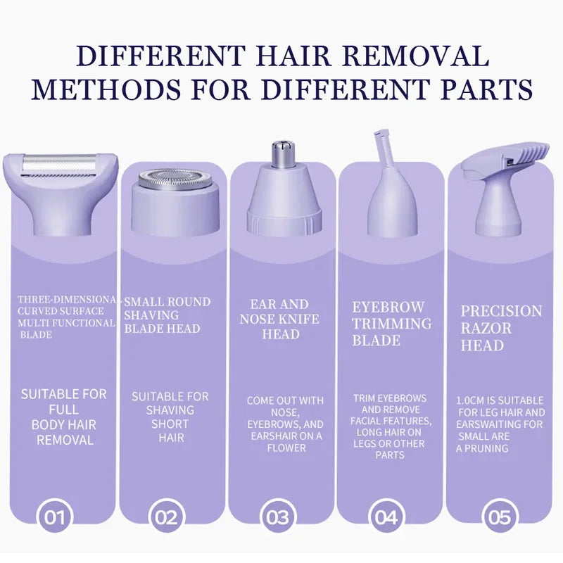 Designet for allsidighet, denne barbermaskinen kombinerer flere funksjoner som barbering, hårfjerning og trimming. Den justerbare vinkelen på 180 ° gjør det enkelt å nå selv de vanskeligste områdene, og sikrer glatte resultater.