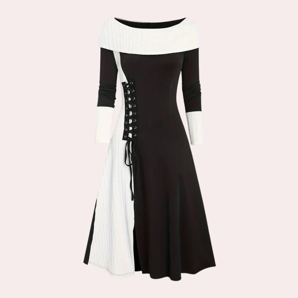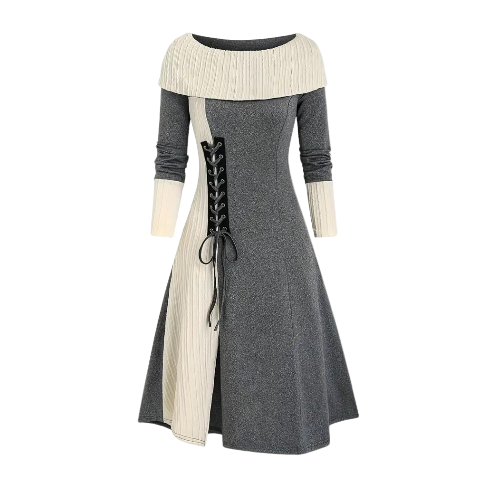 Oppdag vår stilige kjole med snørebånd, designet for å gi deg både komfort og stil. Denne kjolen er perfekt for de kjøligere dagene, og lar deg se smart ut uansett anledning.