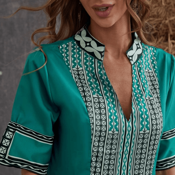 Få frem din vakre dronningeside og vær i sentrum for oppmerksomheten med denne kjolen. Det intrikate frontdesignet og det lange stoffet gir den et kongelig utseende. Myk og pustende, du kan bruke den hele dagen og fortsatt være komfortabel.