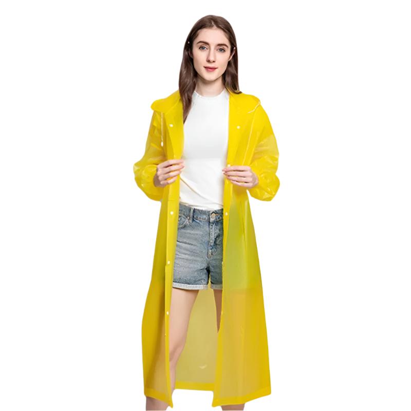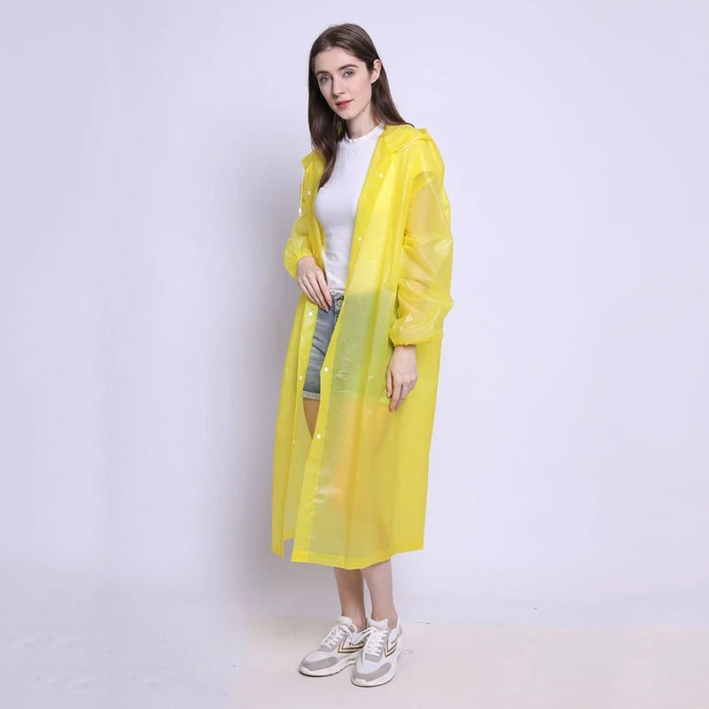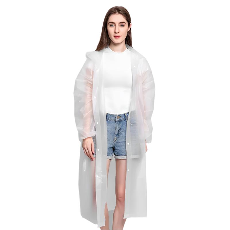 Den gjennomsiktige designen er perfekt for pendling, utendørsopplevelser eller festivaldager, og den kombinerer funksjonalitet med moderne enkelhet, slik at antrekket ditt skinner gjennom. De sikre lukkingene og den justerbare passformen sørger for komfort og full dekning, slik at du holder deg tørr fra topp til tå.