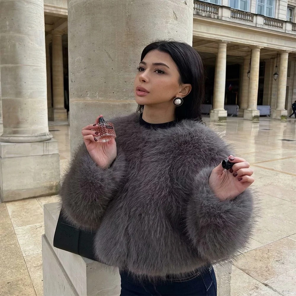 Gå inn i en tidløs stil med vår Vintage Fur Coat for dame. Denne varme og koselige kåpen har en luksuriøs pelsstruktur kombinert med en klassisk rundhalset design for uovertruffen komfort. Den er laget med en enkel, løs passform og en vintage finish i semsket skinn, og er perfekt for lag på lag på kjølige dager.