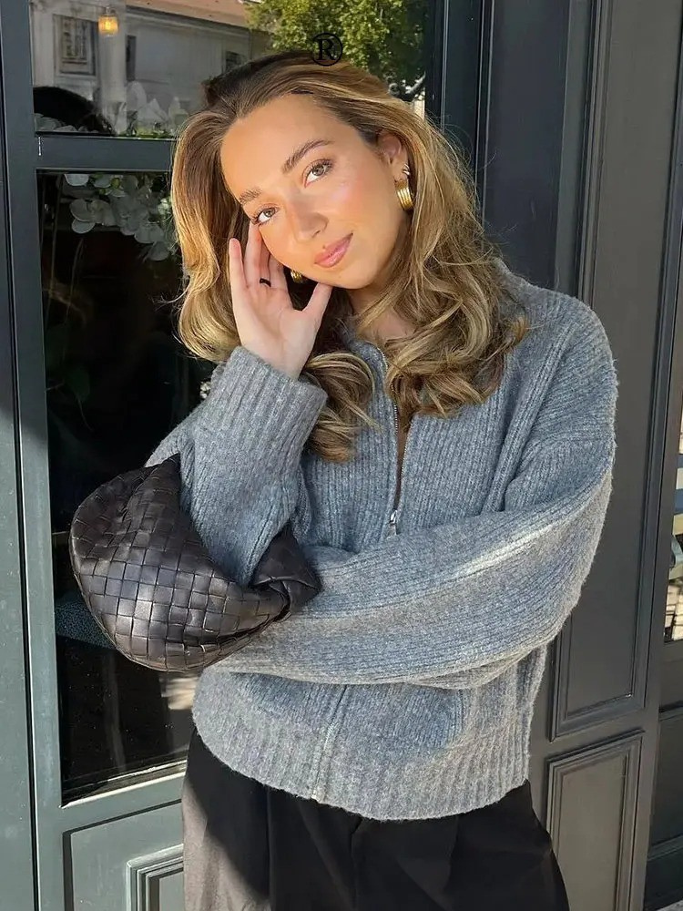 Pakk deg inn i komfort og klassisk sjarm med denne vintage ensfargede langermede genseren med rund hals for kvinner. Denne genseren er designet for hverdagsbruk og har et rent, minimalistisk utseende med en allsidig glidelåslukking for ekstra bekvemmelighet.